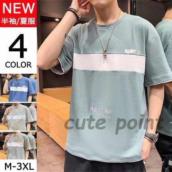 メンズ Tシャツ 夏物 丸首 トップス 半袖 メンズ用 新作 半袖Tシャツ 3色 大きいサイズ