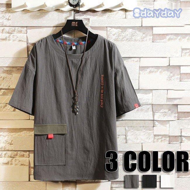 メンズ シャツ 夏物 丸首 トップス 半袖 メンズ用 新作 半袖シャツ 3色 大きいサイズ