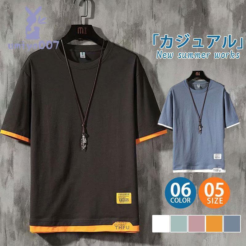 Tシャツ メンズ 半袖 シンプル 大きいサイズ レイヤード tシャツ お兄系 クルーネック かっこいい 夏物 ゆったり トップス カジュアル