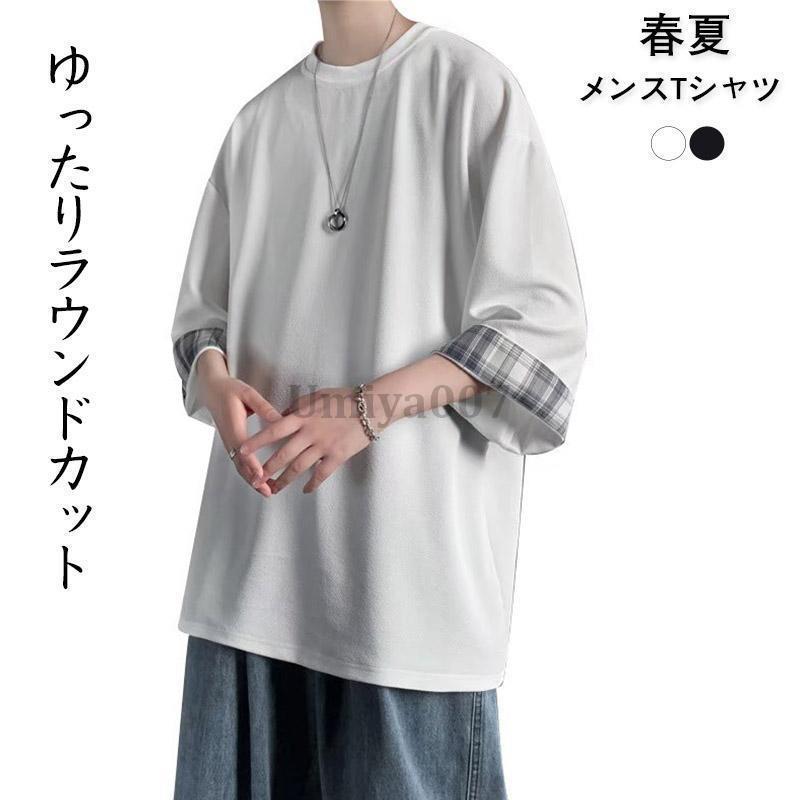 Tシャツ 七分袖Tシャツ メンズ トップス 無地Tシャツ 7分袖 おしゃれ カジュアル tシャツ ゆったり 韓国 夏 クルーネック