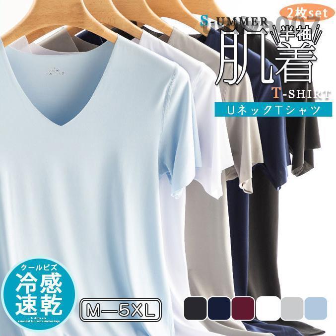 半袖肌着 インナー メンズ 2枚セット Tシャツ シームレス クールビズ 夏 紳士 下着 抗菌 防臭 脇汗 アンダーウェア テレワーク 速乾