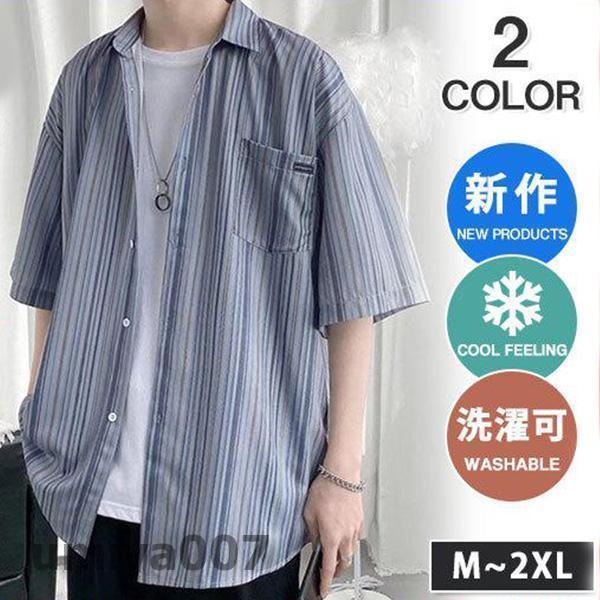 シャツ メンズ 半袖シャツ トップス 開襟シャツ ストライプ カジュアル 夏服 お兄系 お洒落 紳士服 スリム 通勤 父の日 20代 春コーデ 通学