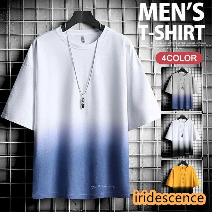 グラデーション Tシャツ メンズ 半袖 クルーネック トップス 半袖Tシャツ サマー おしゃれ メンズファッション 夏