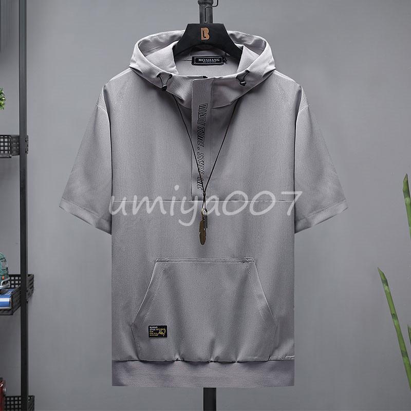 パーカー メンズ プルオーバー 半袖 薄手 フード 大きいサイズ カジュアル 夏服 夏 男性用 半袖Tシャツ 夏向け シンプル おしゃれ お兄系