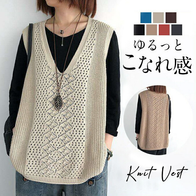ニットベスト レディース チョッキ トップス Vネック 薄手 ゆったり プルオーバー ベスト ジレー セーター 重ね着 夏春秋 体型カバー 無地