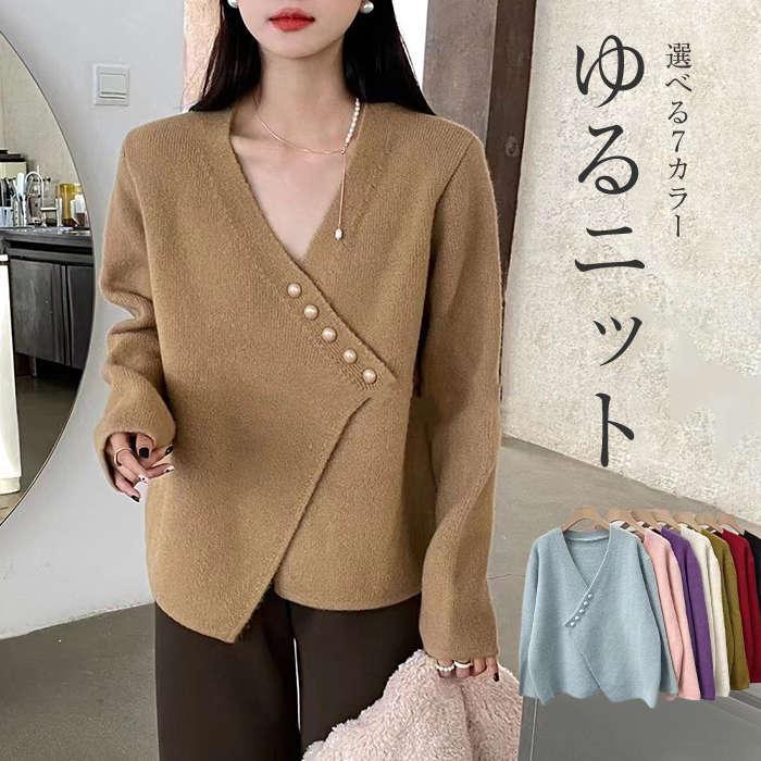 Vネック ニット レディース トップス セーター きれいめ 長袖 秋冬 サイドスリット プルオーバー カラーニット ニットセーター 長袖ニット カ レディースニット