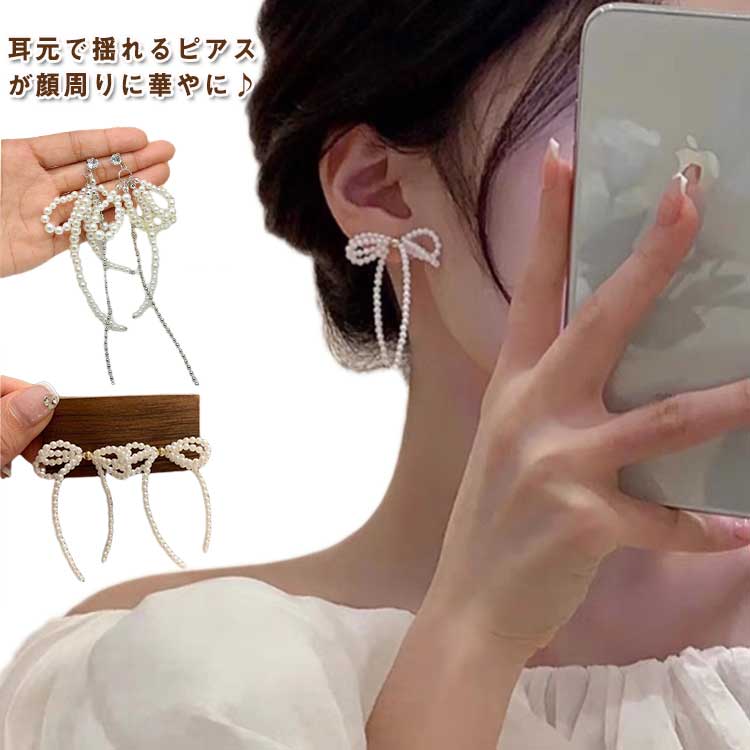 フェイクパール 華奢 韓国 INS風 パールリボンピアス アクセサリー 大人 上品 エレガント 揺れピアス ピアス ジュエリー レディース パールリボン 結婚式 卒業 かわいい 大人っぽい ストリート