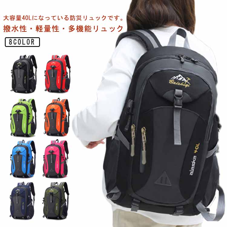 大容量 防災リュック 40L 地震 災害対策 レディース メンズ 防災 リュックサック バックパック 多機能リュック 防水 撥水 軽量 避難時 災害時 防災グッズ 通学 軽い キャンプ スポーツ 旅行