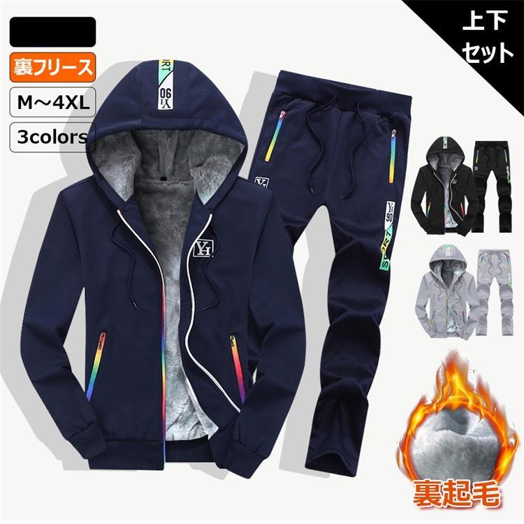 ジャージ 上下セット 長袖 フード付き 前開け 裏フリース 裏起毛 極暖 秋冬春 カジュアル スポーツウェア 運動着 トレーニング スウェットセット