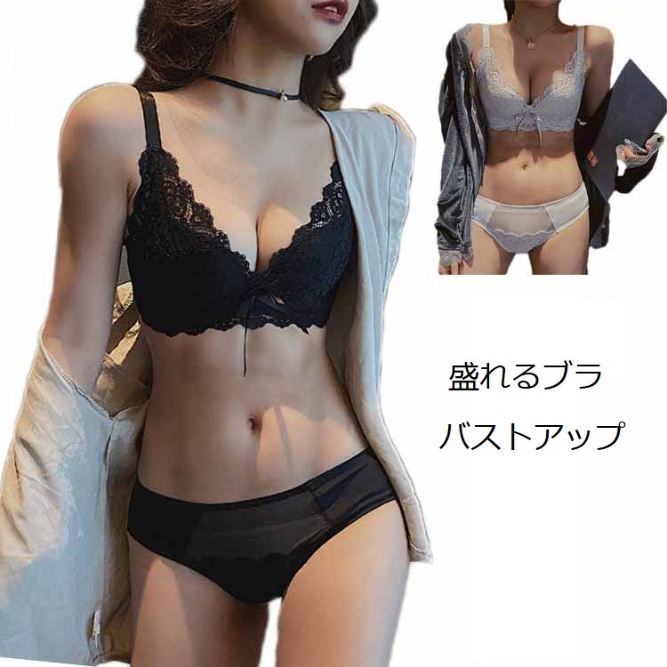 総レースブラ ショーツ セット 小胸 ノンワイヤーブラジャー 谷間 盛れるブラ バストアップ