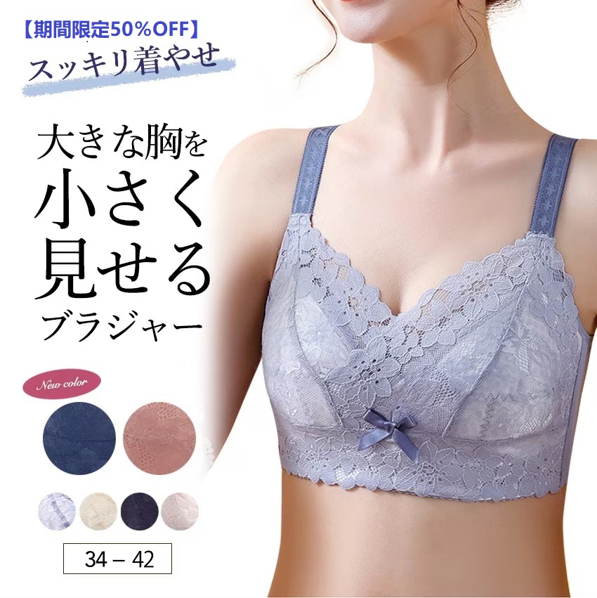 胸が小さく見えるブラ 脇高 インナー 痩せみえ効果 補正ブラ 大きいサイズ グラマー