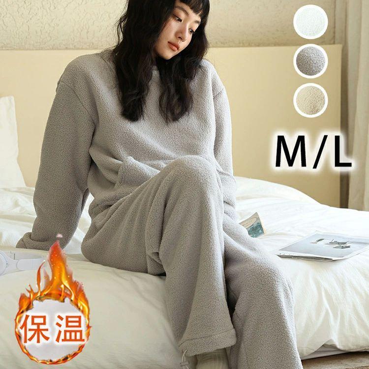 ルームウェア レディース 冬 スウェット 可愛い セットアップ もこもこ 暖かい 部屋着 クルーネック ナイトウェア 寝間着 あったか 温活 カジュアル