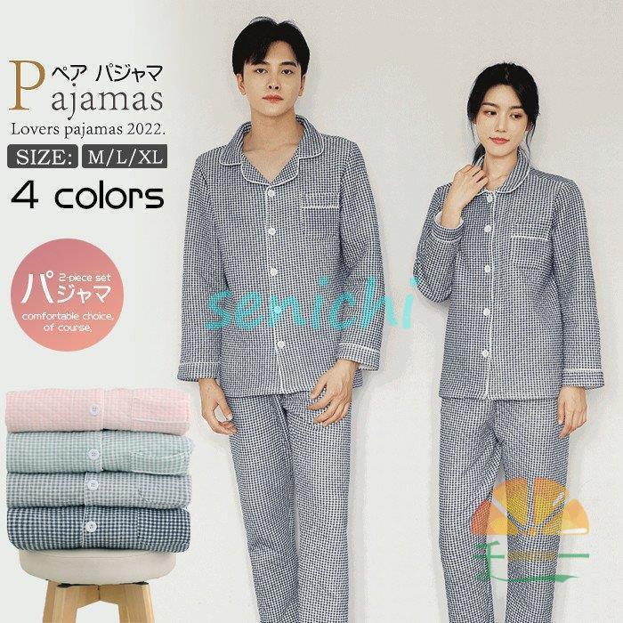 ペア パジャマ プレゼント ガーゼ 春 秋 ダブルガーゼ 綿 100 前開き 長袖 メンズ レディース 上下セット 女性 結婚祝い お祝い 男性