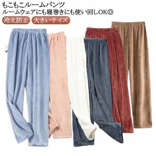 パジャマ ルームパンツ もこもこ 冬 ルームウェア ウエストゴム 無地 母の日 プレゼント 暖かい かわいい 長ズボン ナイトウェア ボトムス
