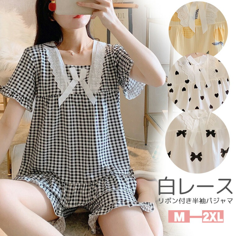 清楚な白レース あまあま パジャマ 半袖 短パン セット 春 夏 上下セット 大人 ルームウェア 可愛い ナイトウエア 大きいサイズ