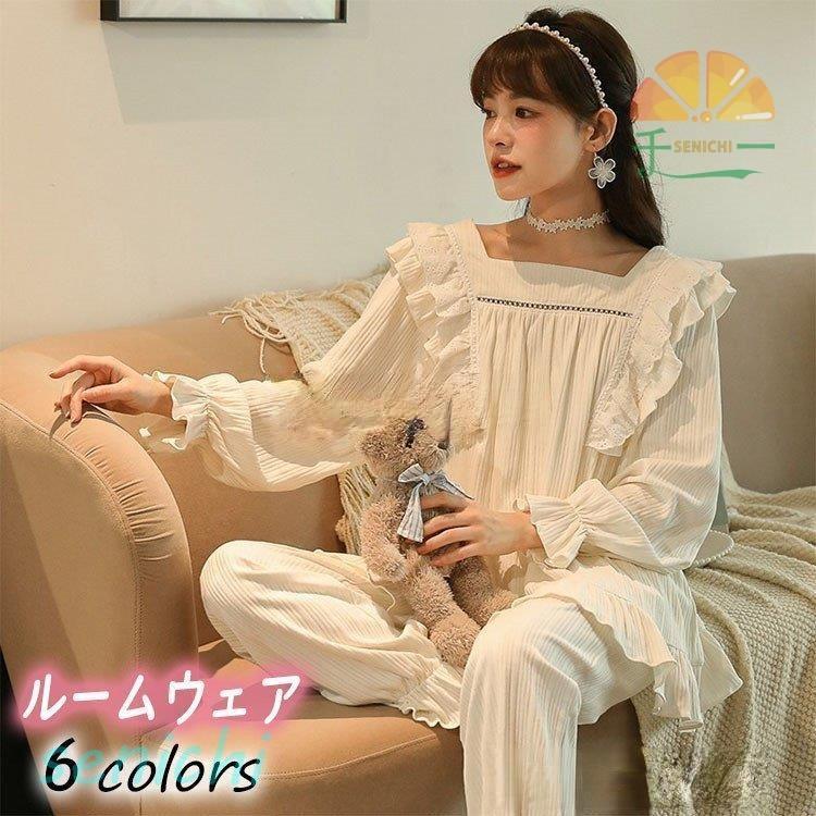 パジャマ ルームウェア レディース 綿 肌触りも良く春秋 パジャマ長袖 ロングパンツ 女性 姫系 部屋着 寝巻き 可愛い