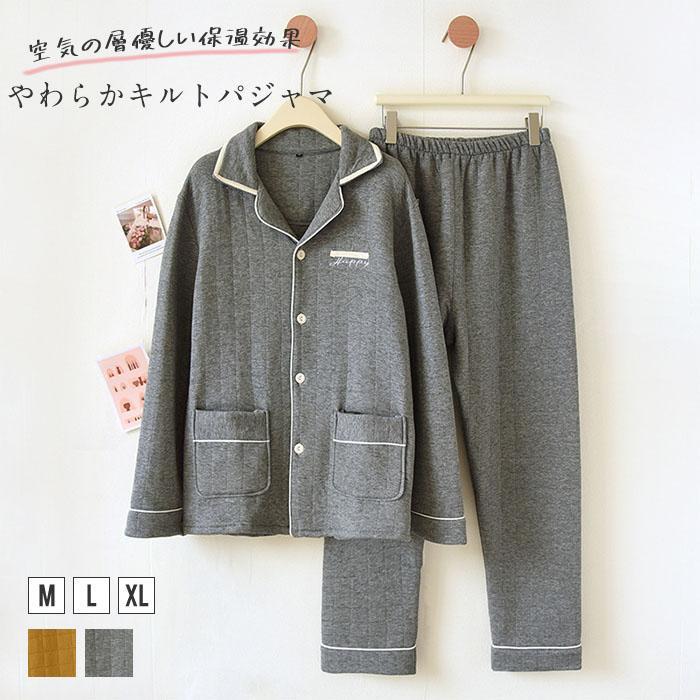パジャマ メンズ レディース 綿100% キルトニット 長袖 前開き 冬 上下セット ニットキルト ルームウェア 肌に優しい 暖かい 冬用 入院 旅行 無地 シンプ 紳士
