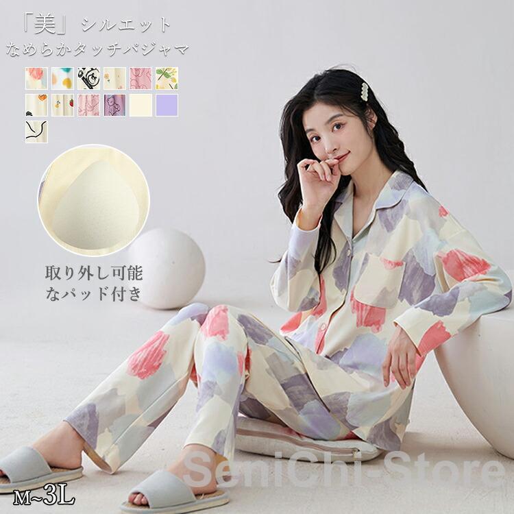 ルームウェア パジャマ レディース パッド付き 取り外し可能 部屋着 入院 前開き 長袖 長ズボン 春 夏 秋 冬 20代 30代 40代 50代 60代 M 2L 3L 大きいサイズ L