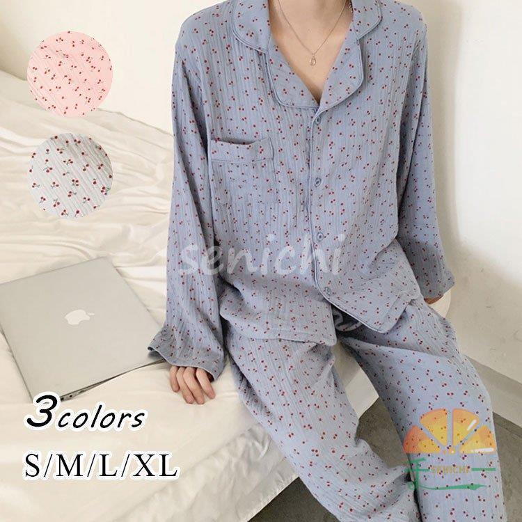 パジャマ レディース 春 秋 長袖 ロングパンツ ルームウェア 花柄 上下セット 前開き 部屋着 韓国風 寝巻き 可愛い