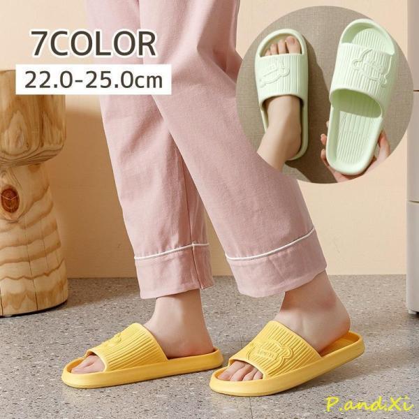 シャワーサンダル レディース メンズ サンダル スリッパ ラバーサンダル ストライプ クマ ロゴ ティーン かわいい シンプル 女子 男子 おしゃれ
