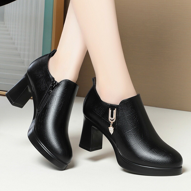 厚底ローファーレディース太ヒールパンプス ワンベルトバックル ローファー 歩きやすいラウンドトゥシューズ メイド靴 美脚脚長お嬢様パンプス miniministore 80TON ヒール9cm疲れない