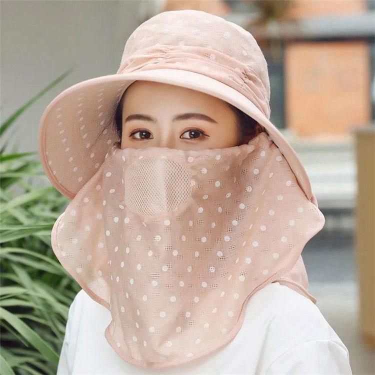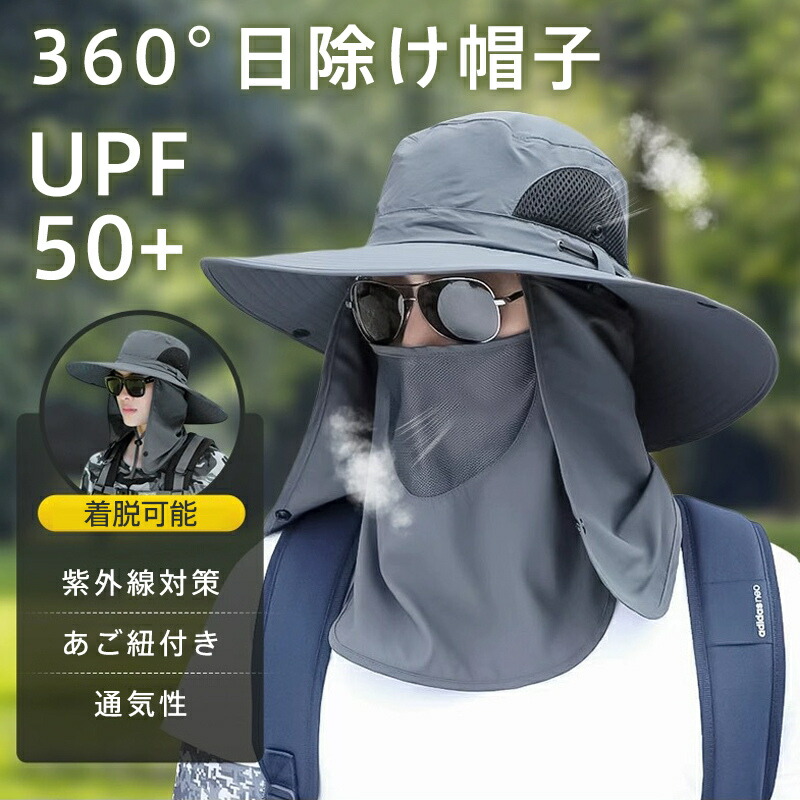 SPF50+ 帽子 レディース サンバイザーフェイスガード UVカット 日よけ帽子 つば広 360度 紫外線対策 農作業 ガーデニング 釣り 日焼け防止 屋外