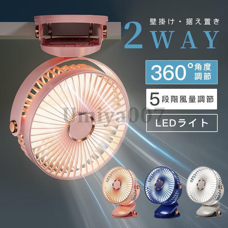 充電式クリップファン 卓上扇風機 壁掛け 据え置き 2 サーキュレーター ポータブル 360°角度調節 5段風量 コードレス お手入れ簡単 静音