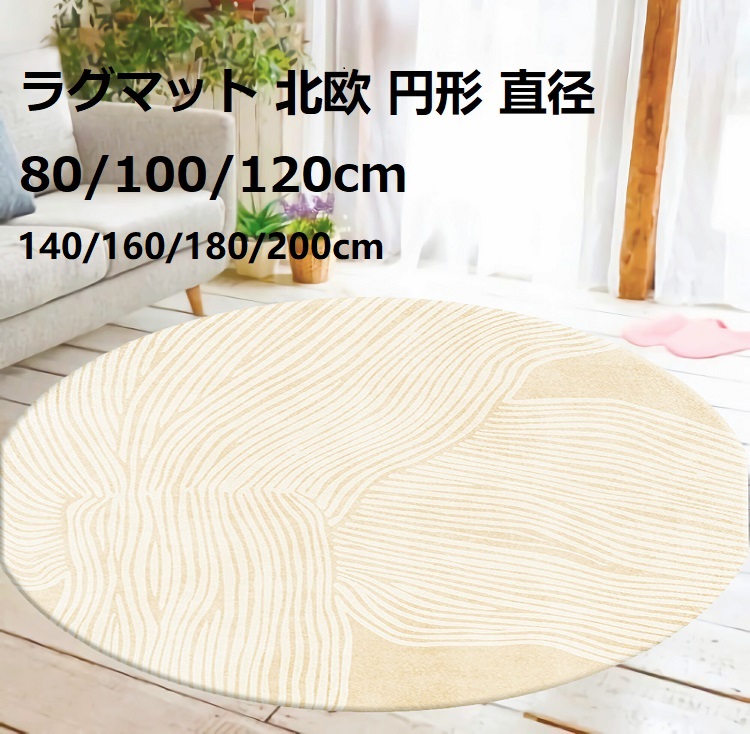 ラグマット ラグ 絨毯カーペット 北欧 円形 直径80 100 120cm 丸型 滑り止め付 抗菌 防臭 防ダニ ふわふわ手触り 低反発 丸洗いOK 四季通用 アイボリー