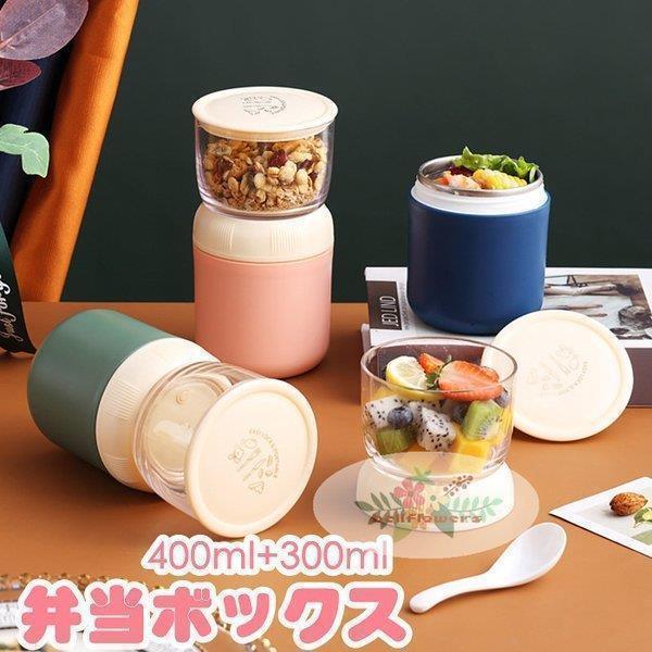 弁当箱 大容量 ランチボックス 乾湿分離 400ml+300ml 304ステンレス PP フォーク付き シリコン スリム 2段 仕切り
