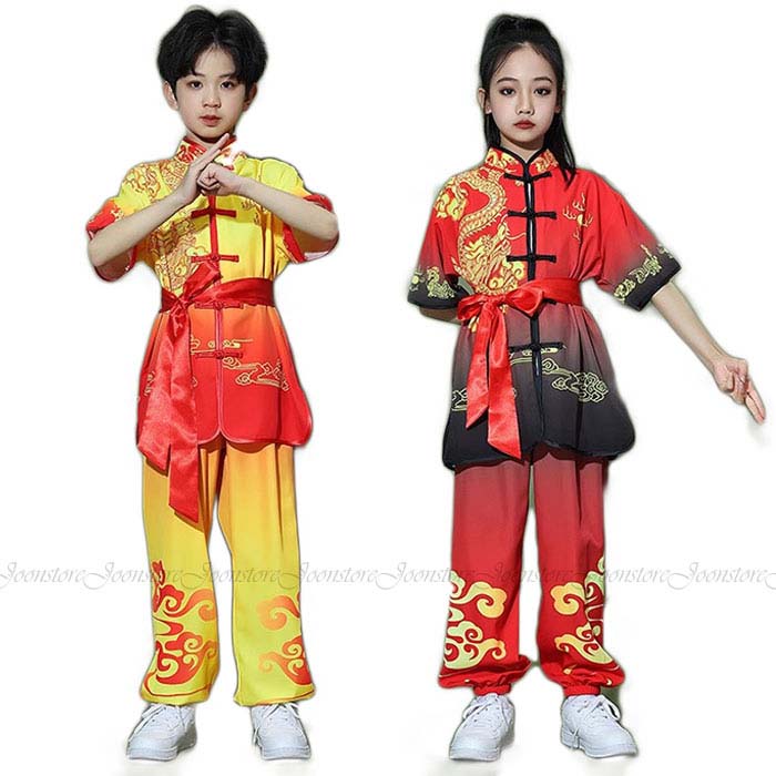 子供カンフー衣装 演武用 子供用太極拳服 太極拳ウェア 上下セット 半袖 武術衣装 気功 公演服 男女兼用 太極拳服 中華武術服 ジュニア キッズ スポーツ服 練功服 学園祭 文化祭