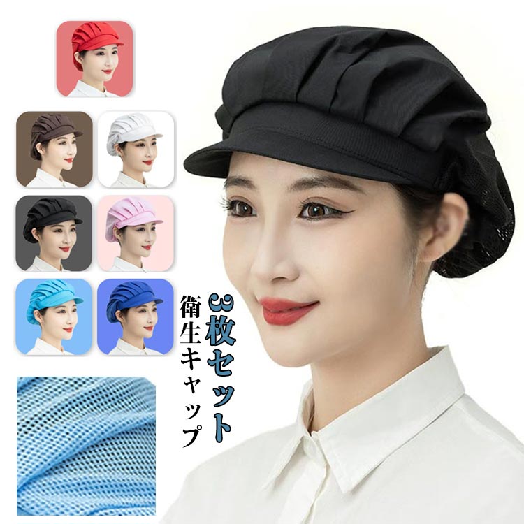 衛生キャップ 3個セット 衛生帽 給食帽 厨房用帽子 給食ぼうし 洗える おしゃれ 3枚セット キッチン 工場 飲食店 帽子 通気性 大人用 男女兼用