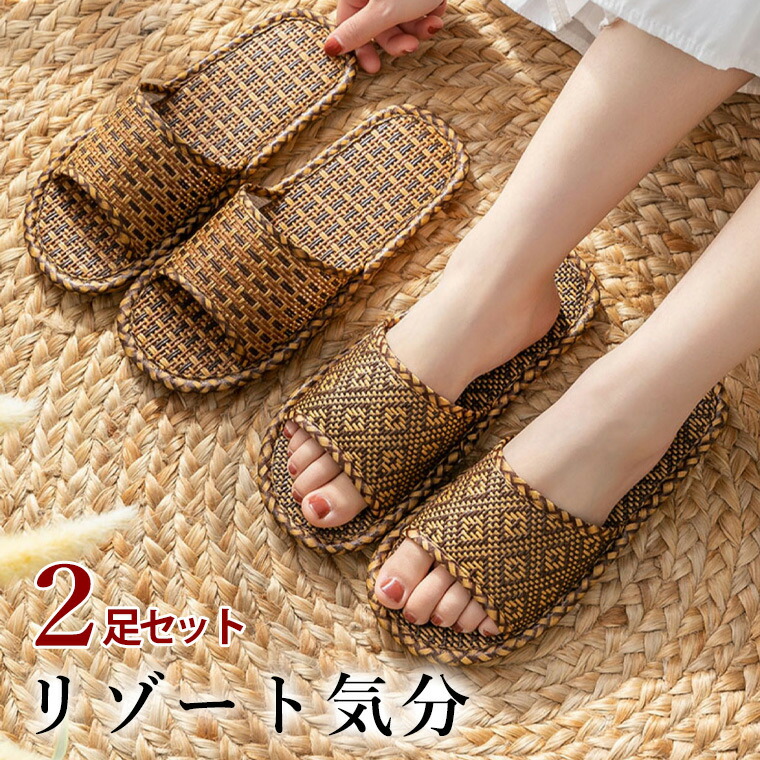今だけ2足セット リゾート気分のアジアンルームシューズ スリッパ 亜麻 リネン アマ 編み リゾート アジアンテイスト 南国 リゾートホテル