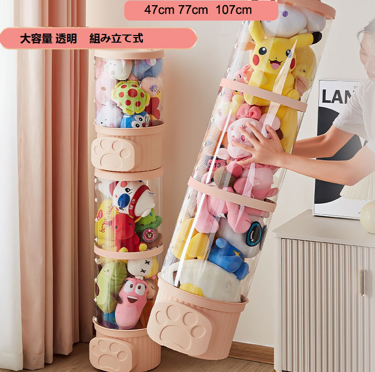 ぬいぐるみ収納 組み立て式 収納ケース おもちゃ収納ボックス 円柱形 蓋付き 大容量 透明 収納チューブ 展示ボックス 頑丈 陳列棚 ぬいぐるみ保管 DIY 防塵