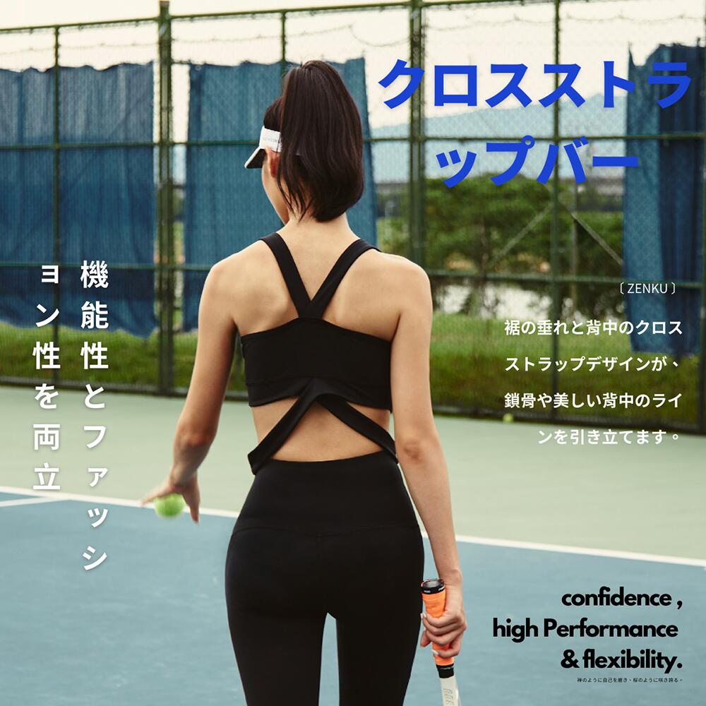 鎖骨と美しい背中を引き立てるデザイン フィットネスブラ おしゃれ かわいい ウォーキング ジョギング スポーツ トレーニングウェア スリム ロング 丈 シンプル