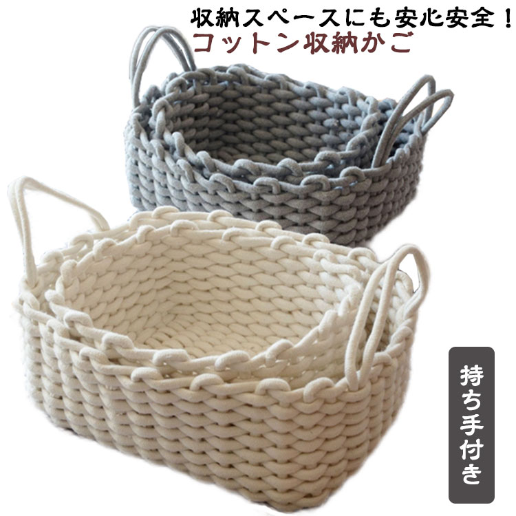 コットンロープ バスケット 柔らか 収納 持ち手付き シンプル 無地 おしゃれ インテリア コットンカゴ タオル収納 衣類収納 おもちゃ 子供部屋 大容量 レクタングル 着替え 荷物 入れ 置き ギフ