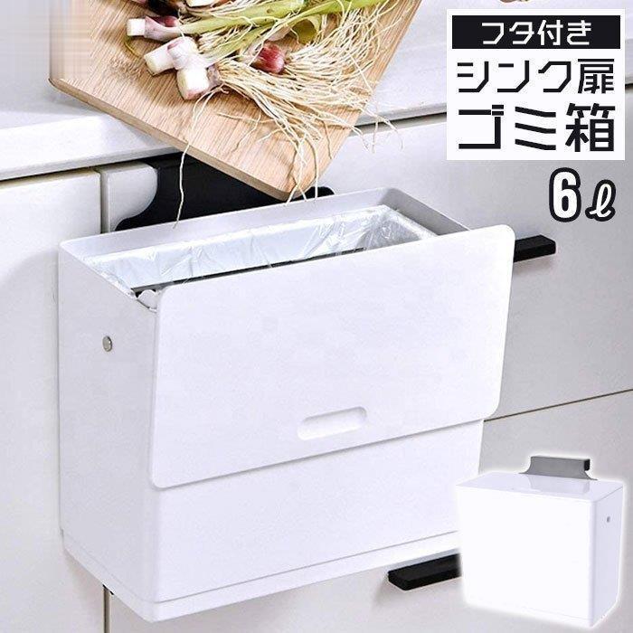ゴミ箱 蓋付き シンク 扉 ふた付き 6 ホワイト 壁掛け キッチン 生ゴミ入れ 小さい ふたつき スクエア 角型 洗面所 台所 トイレ シンプル