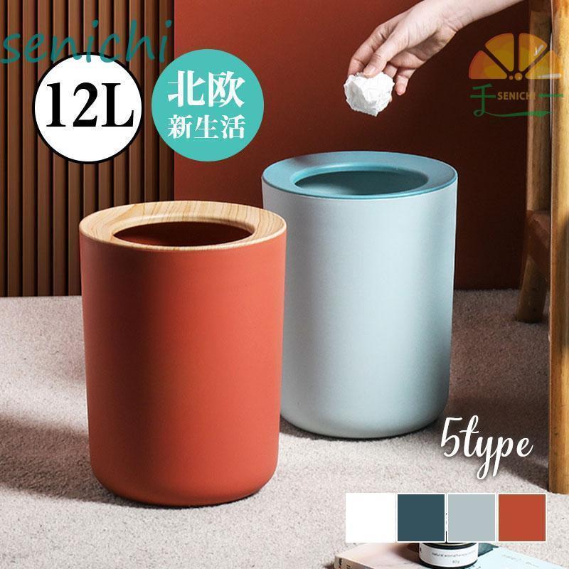 ゴミ箱 ごみ箱 9 12 円形 北欧 無地 二重構造 ダストボックス 袋が見えない キッチン 隠す リビング 寝室 大容量 ホワイト ブルー グリーン おしゃれ イエロー