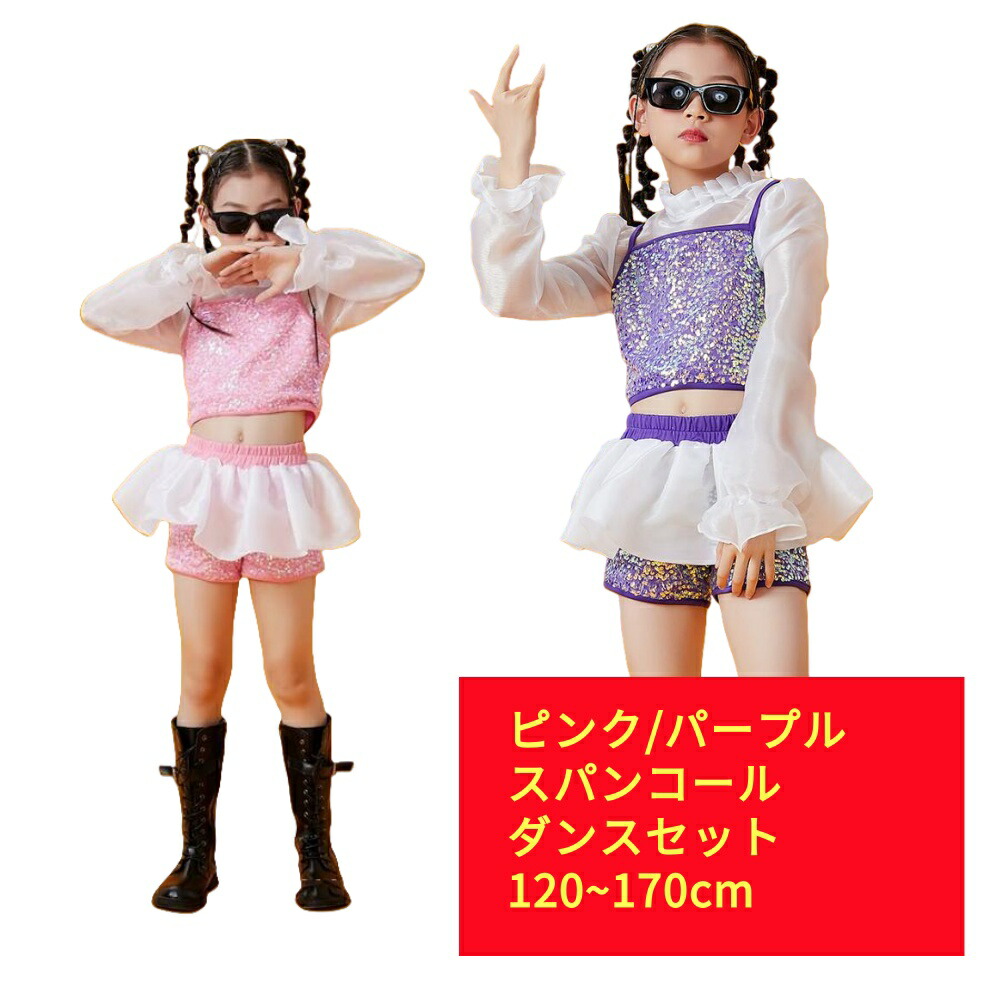 女の子 ジャズダンス衣装 ヒップホップ風 ダンス衣装セット スパンコール ショートスカート へそ出し 女の子ダンス衣装 個性 スパンコール
