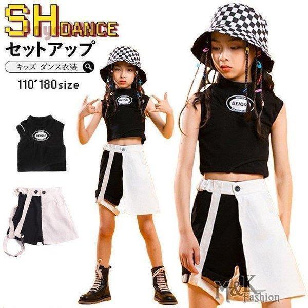 キッズ ダンス衣装 黒 白 セットアップ シャツ パンツ ヒップホップ 長袖 男の子 女の子 カッコイイ 韓国 チアガール 子供 発表会 演出服 110-180cm 団体服