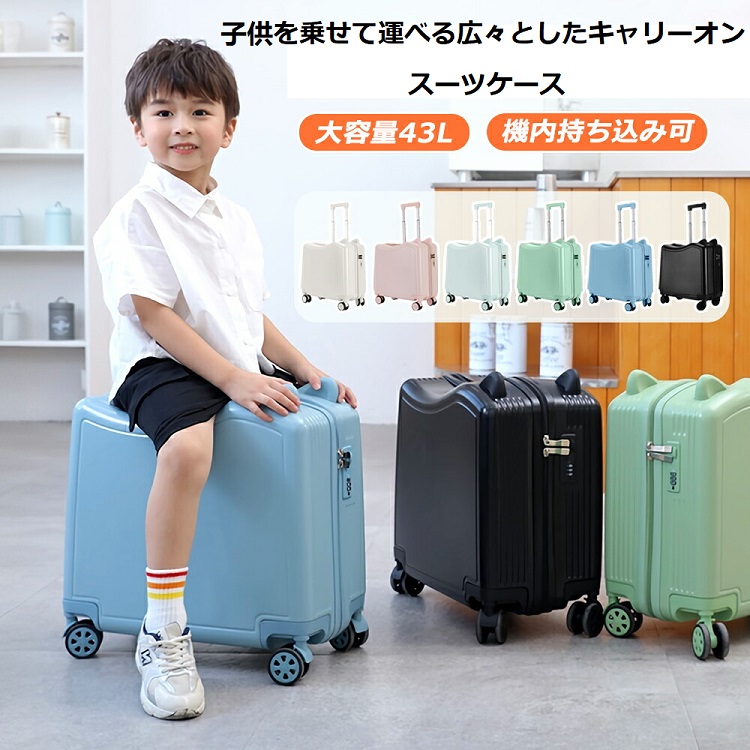 子供を乗せて運べる広々としたキャリーオンスーツケース 機内持ち込み可能スーツケースでエコノミーシートをファーストクラスに