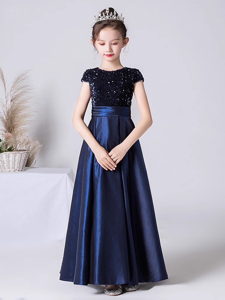 キッズドレス 子供ドレス ネイビー 紺色 スパンコール ドレス キラキラ 黒 ブラック ロングドレス サテン 子供 ドレス ピアノ発表会 ワイン赤 赤 女児ドレス ロング丈 半袖 緑 演奏会ドレス グリーン グレー 演出服 90-160cm