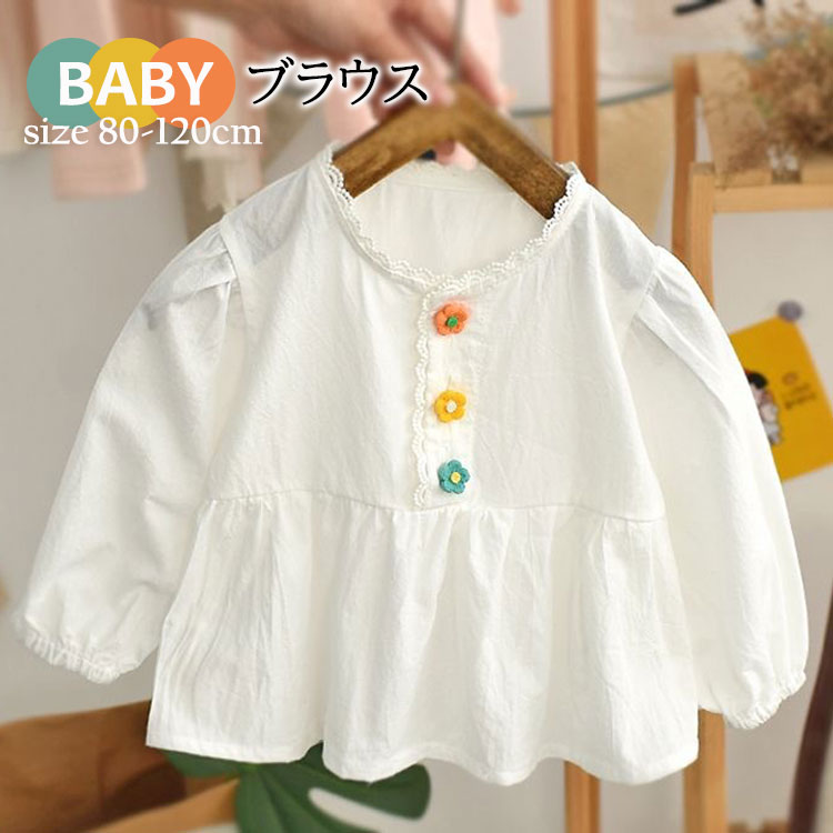 ベビー ブラウス 女の子 ベビー服 トップス キッズシャツ 子供シャツ 白 長袖 春 夏 秋 襟なし 女児 ガールズ 80 90 100 110 120 保育園 幼稚園 通園 通学 こども服 かわ