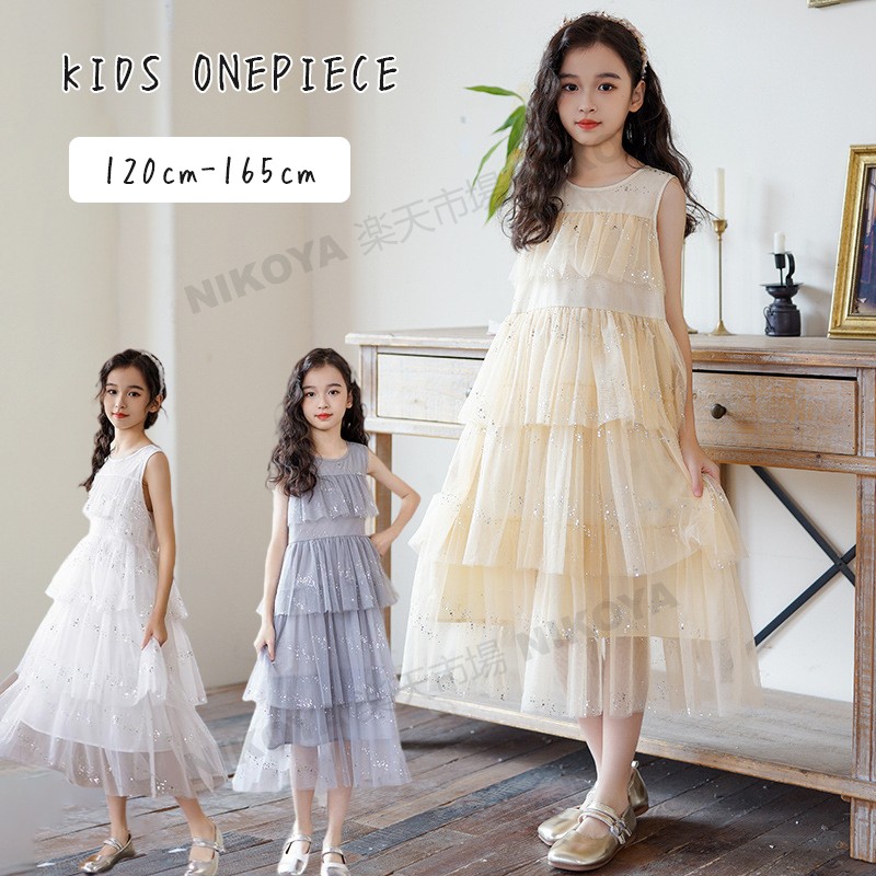 【新作】子供服 ジュニア 夏 ワンピース ノースリーブ ワンピース チュールワンピース 夏 可愛い 120 130 140 150 160 165 キッズ 子供 子供服 女の子 誕生日 プレゼント