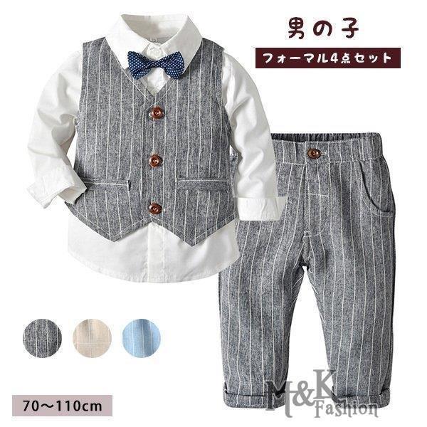 子供服 4点セット フォーマルスーツ セットアップ 男の子 キッズ スーツ ベビー タキシード70-110 結婚式 卒業式 七五三 出産祝い
