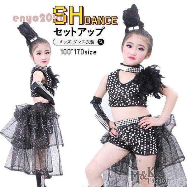 キッズダンス衣装 女の子 セット ジャズダンス トップス スカート パンツ スパンコール ヒップホップ こども ジュニア 子供服 上下セット