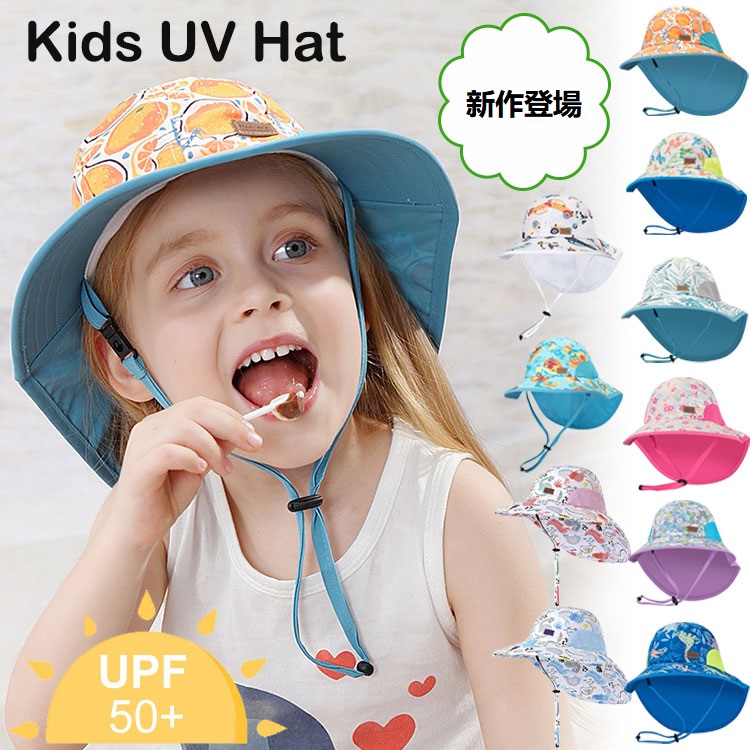 キッズ 帽子 可愛い アゴ紐付き 花柄 おしゃれ 男の子 女の子 日よけ帽子 UV ハット ビーチハット バイザーハット 10色 UPF50+ 紫外線カット アウトドア 幼稚園 小学生 プール 水遊び 海 旅行 S M L