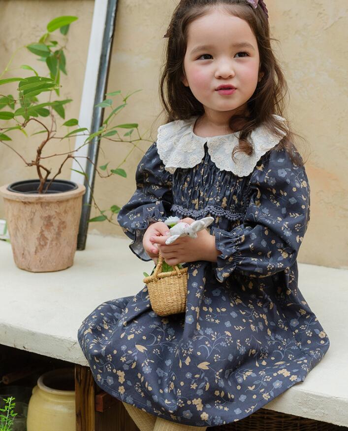 花柄ワンピース 襟付きキッズ ベビーワンピース 長袖 女の子 子供服 こども服 ドレス 秋 冬 春 100cm 110cm120cm130cm140cm150cm通園 通学