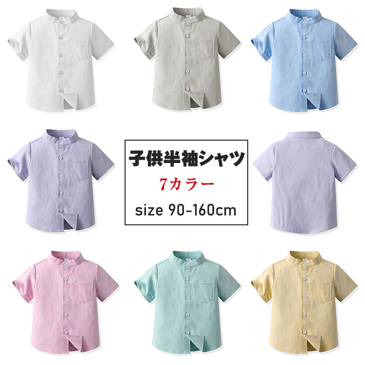 キッズシャツ 男の子 半袖 立ち襟シャツ カジュアルシャツ 夏用 子供 無地 90 100 110 120 130 140 150 160 かわいい 子供シャツ 前開き 学生 フォーマル お受験 面接