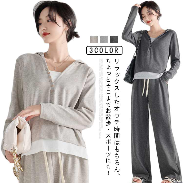 マタニティウェア 長袖 パンツ トップス 外出服 カジュアル セットアップ 春 上下セット 秋 レディース スウェット 長ズボン ゆったり 通気性 授乳服 妊娠