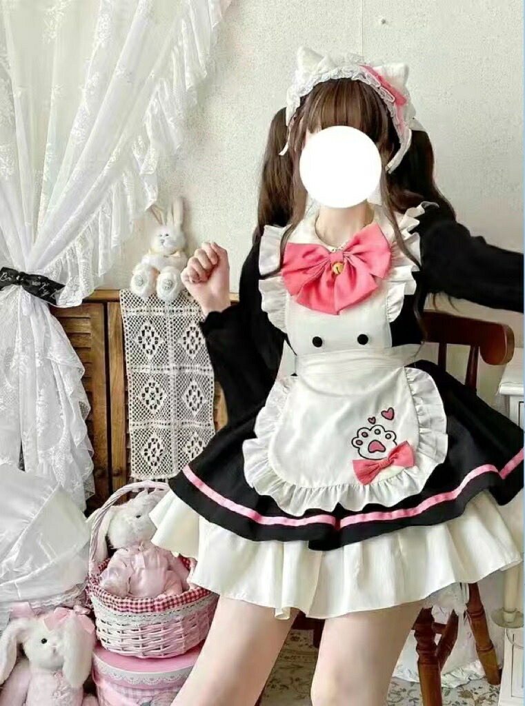 メイド服 ワンピース 長袖 6点セット 可愛い セット ショート丈 パニエ 猫耳KC 猫爪 お姫様 甘ロリータ スウィート風 キュット イベント 可愛いコスチューム 文化祭 学 パーティー